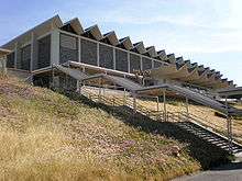 El Camino High School is situated on a foothill of the San Bruno Mountain and consists of five different levels. The first level consists of a theater and a parking lot which, in 2012, was updated to contain a wide solar panel array. The second level holds the majority of the school with the two-story Academic Building, a courtyard with the Red Stage, cafeteria/teachers' lounge and the Counseling, Attendance and Main Offices as well as a library. The third level holds a Science Building and a Performing Arts Building. The fourth level holds two gyms, pool, a Weightlifting Building and a few portables. A new track and athletic facility which opened in 2013 is located on the fifth level. A new two-floor Science Building opened in April 2014.