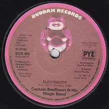 "Electricity" is a song by Captain Beefheart and his Magic Band on the 1967 album Safe as Milk. Beefheart claimed the label he and his band were signed to, A&M Records, dropped them after co-owner Jerry Moss heard the song and declared it "too negative"[2] for his teenage daughter to listen to. Beefheart's vocals, while recording the final version for the album, shattered the microphone.[3][4]
