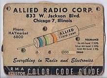 The electronic color code is used to indicate the values or ratings of electronic components, usually for resistors, but also for capacitors, inductors, diodes and others. A separate code, the 25-pair color code, is used to identify wires in some telecommunications cables.