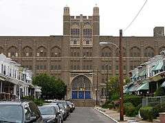 Elizabeth Duane Gillespie Junior High School is a historic junior high school building located in the Nicetown–Tioga neighborhood of Philadelphia, Pennsylvania. It was designed by Irwin T. Catharine and built in 1925-1927. It is a four-story, 17 bay, brick building on a raised basement in the Late Gothic Revival-style. It features projecting end pavilions, arched openings, and a large stone Gothic entryway.[2] It was named for president of the Colonial Dames of Pennsylvania and Flag Day founder Elizabeth Duane Gillespie.
