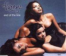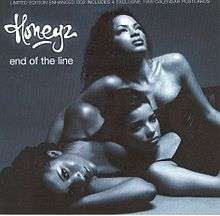 "End of the Line" is a song by British girl group Honeyz. It was released as the group's second single. It was released in December 1998 and reached the top five of the UK Singles Chart. It also got to number one on the UK R&B Chart, and was their longest charting single, spending 14 weeks in the Top 75. The single has sold 360,000 copies in the UK alone.