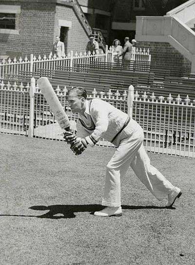 The MCC chose a number of all-rounders for their team, but none of real quality. The balding and bespectacled Paul Gibb had a sensational tour of South Africa before in 1938–39, when he hit 473 runs (59.12) and two centuries, but in Australia was found to have a weakness against leg-spin and failed. He was chosen for the First Test ahead of Godfrey Evans because of his batting ability, but Evans proved to be a decent batsman, a perky, attacking player who tried to take a run off every ball, but in the Fourth Test he went for a record 95 minutes before scoring while Compton made a century at the other end.[44] At 28 Jack Ikin was one of the younger English players on the tour and apart from five first class matches in 1938 and 1939 he was a post-war player. Not noted for his footwork or strokeplay he was a gritty left-hander who was picked even though he only made one century for Lancashire in 1946. He was popular in Australia as he was a Tobruk Rat who had fought alongside the Australian 9th Division in North Africa.[45] Norman Yardley was a sensible player who liked to play his strokes on the leg-side and though he never made a Test century was a good man in a crisis.[46] James Langridge, Peter Smith and Bill Voce were bowlers who regularly made runs and even centuries for their counties, but Doug Wright's only hundred had become before the war and afterwards was relegated to the bottom of the batting order. Alec Bedser was a tailender who was capable of hitting a few runs on occasion and Dick Pollard's lack of batting ability was cited as one of the reasons why he was not picked for a Test in the series.