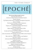 Epoché: A Journal for the History of Philosophy is a peer-reviewed academic journal that examines the history of philosophy as an essential part of contemporary philosophical discussion. The journal is open to different ideas and approaches, but it is particularly interested in articles from the continental or hermeneutic traditions. The journal is edited by Theodore George (Texas A&M University). It is published twice yearly on a non-profit in cooperation with the Philosophy Documentation Center and all issues are available online.