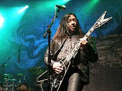 Eric Peterson (born May 14, 1964) is an American guitarist. He is best known as the only constant member of the US thrash metal band Testament. Peterson has also formed a side-project black metal band called Dragonlord, in which he plays guitar and also sings. In Testament, Peterson was originally a rhythm guitarist while Alex Skolnick handled all lead work. More recently though Peterson plays leads along with Skolnick.