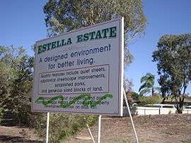 - ↑ Australian Bureau of Statistics (25 October 2007). "Estella (State Suburb)". 2006 Census QuickStats. Retrieved 2008-06-29.