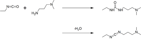 EDC is commercially available. It may be prepared by coupling ethyl isocyanate with N,N-dimethylpropane-1,3-diamine to give a urea, followed by dehydration:[1]