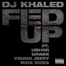 "Fed Up" is the first single from DJ Khaled’s fourth studio album Victory, which was released on March 2, 2010. The track features artists Usher, Drake, Young Jeezy and Rick Ross.[1] It was leaked on October 28, 2009. The album version features an additional verse by Lil Wayne after Drake's verse was leaked on November 10, 2009, it is the official remix.