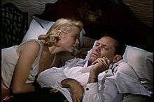 After the consecutive filming of Rear Window, Toko-Ri, Country Girl, and Green Fire, Kelly flew to the French Riviera to begin work on her third and last film for Alfred Hitchcock, To Catch a Thief. Lent by MGM to Paramount Films for the fifth time, Kelly plays the role of a temptress who wears "luxurious and alluring clothes", while Cary Grant plays the role of a former cat thief now looking to catch a "thief who is imitating him".[26] Kelly and Grant developed a mutual admiration. The two cherished their time together for the rest of their lives. Years later, when asked to name his all-time favorite actress, Grant replied without hesitation: "Well, with all due respect to dear Ingrid Bergman, I much preferred Grace. She had serenity".[27]