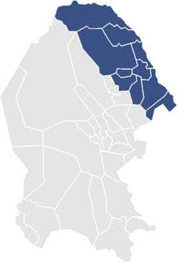 Under the 2005 districting scheme, Coahuila's First District covers the municipalities of Acuña, Allende, Guerrero, Hidalgo, Jiménez, Morelos, Nava, Piedras Negras, Villa Unión and Zaragoza.[1]