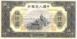 The first series of Renminbi banknotes was introduced during the Chinese Civil War by the newly founded People's Bank of China on December 1, 1948, nearly one year before the founding of the People's Republic of China itself. It was issued to unify and replace the various currencies of the communist-held territories as well as the currency of the Nationalist government.[1]