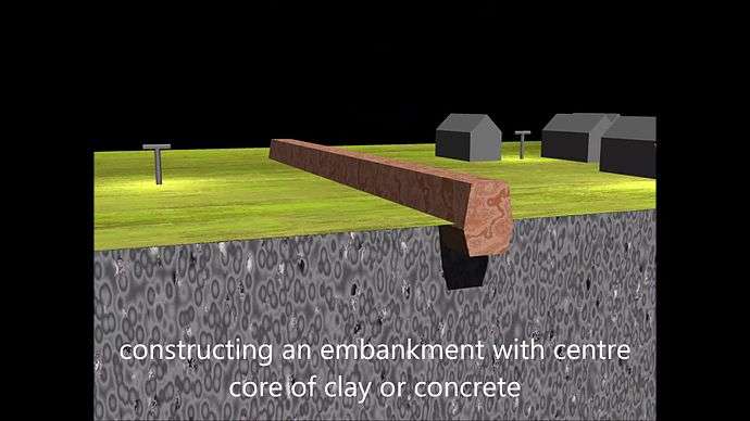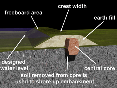 Modern improvements to this design include constructing an internal central core made from impermeable substance like clay or concrete, some even use metal pilings.[2]