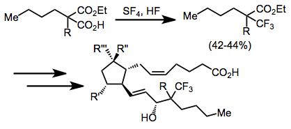 The synthesis of a prostaglandin bearing a trifluoromethyl group at C-16 is based on an intermediate obtained by fluorination of a carboxylic acid with sulfur tetrafluoride.[14]