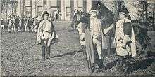 The single reel drama, approximately 1,000 feet long, was released on February 21, 1911.[1] The film was originally set to be released under the title The Patriot Maid of '76.[1] The reason for the title change was due to the release by the Rex Motion Picture Company's A Heroine of '76 on February 16, 1911. Though the film bears similarity in title and character, the plots were entirely different.[1] Rex's film was also the first release by the new company.[4] For the release of this patriotic film, Thanhouser made additional efforts for promoting the film in trade publications. A film still was used as the cover illustration on the February 11, 1911 issue of The Moving Picture News and a full-page still would be included in the The Moving Picture World's February 11 issue.[1][note 1]