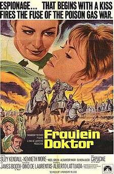 Fräulein Doktor is a First World War spy film released in 1969, loosely based on the life of Elsbeth Schragmüller. It was an Italian and Yugoslavian co-production directed by Alberto Lattuada, starring Suzy Kendall and Kenneth More, and featuring Capucine, James Booth, Giancarlo Giannini and Nigel Green. It was produced by Dino De Laurentiis and has a music score by Ennio Morricone. It was distributed by Paramount Pictures in the United States.