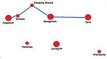 The Frankfort and Cincinnati Railroad ran between Frankfort, Kentucky and Paris, Kentucky, with a major stop in Georgetown, Kentucky; a distance of 40 miles (64 km). It was at Georgetown that it crossed the Southern Railway.[2]