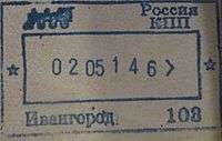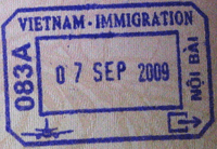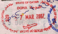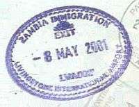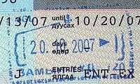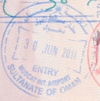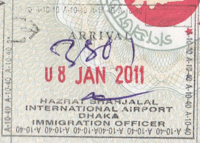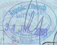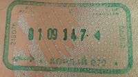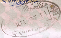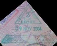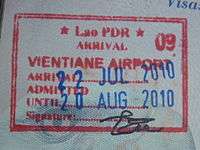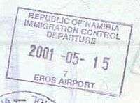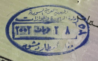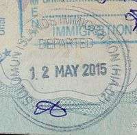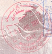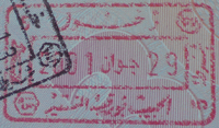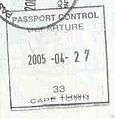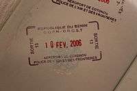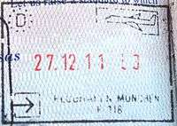 - ↑ New style airport entry stamp. A similar style will likely soon replace road entry stamps.