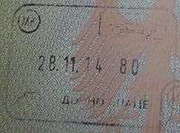 - ↑ The date, duration and coat of arms are stamped/written separately by border officials. There is no difference in design between entry or exit stamps.
