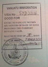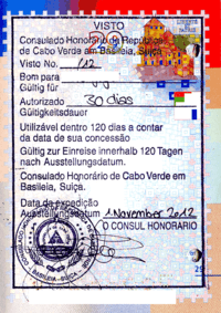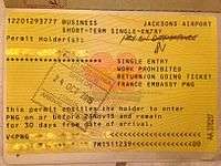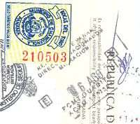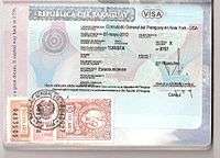 - ↑ Paraguay requires citizens of many countries to obtain a visa before entering the country (pictured left). This can generally only be acquired at a Paraguayan Embassy or upon arrival at ASU Airport.