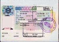 The gallery of passport stamps by country or territory contains an alphabetical list of sovereign states or dependent territories with images of their passport stamps including visas. All countries in the Schengen Area use the same format for their stamps, and stamps are not issued while traveling from one country to another within the area, even in the case of temporarily re-introduced border controls.