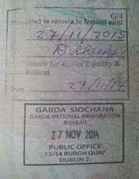 Ireland immigration stamp issued at Dublin Airport