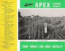 - 'Apex' winter wheat, introduced in 1967,[21] the first wheat to be granted plant breeders' rights in the United Kingdom.