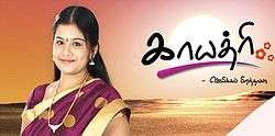 Gayathri (Tamil: காயத்திரி) is an Tamil soap opera that aired on Zee Tamil. The show premiered on 20 January 2014 and aired Monday through Friday at 10PM IST. Starting from Monday 10 November 2014, the show was shifted to 7:30PM time Slot. The show starring by Neema, Veenu, Vijay, Akhila, Ragavi and Varalakshmi. The Show Directed by R. Balaji Yathev and A.P.Rajanthiran. The show last aired on 7 November 2014 and ended with 201 episodes. It also aired in United Kingdom Tamil Channel on Deepam TV.