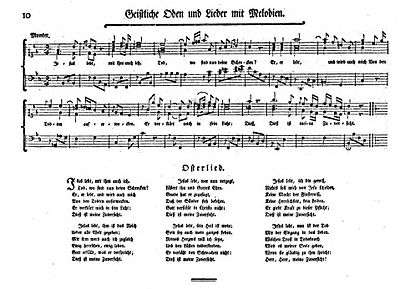 One of the best known German poets of his time, Christian Fürchtegott Gellert was a professor of philosophy at Leipzig University. In 1757, at age 42, he published Geistliche Oden und Lieder, a collection of sacred poetry that enjoyed considerable success. Gellert himself suggested that the poems could be sung to traditional chorale melodies, and although the poetry employs a vast number of forms and techniques, provisions were made by Gellert to make musical settings possible.[1]
