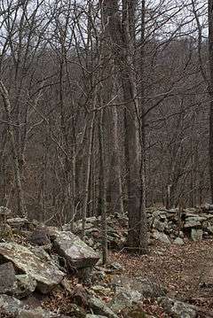The Giant City Stone Fort Site is the site of a prehistoric stone enclosure located within Giant City State Park in Jackson County, Illinois, United States. The Stone Fort dates to the Late Woodland period and was constructed and used in the period from c. AD 600-900; it is one of ten such sites known in Southern Illinois. All ten were constructed atop either promontories or hilltops; the Giant City site is in the former group, as it sits atop a sloped ridge. The purpose of these enclosures is unclear; while archaeologists originally theorized that they were military fortifications, the present archaeological consensus suggests that the sites were used as meeting places or ceremonial locations of some nature.[2]
