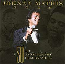 Gold: A 50th Anniversary Celebration is a compilation album by American pop singer Johnny Mathis that was released on November 21, 2006, by Columbia Records and takes the first 13 of its 18 tracks from the first four years of his recording career. The collection then jumps ahead 27 years for the remaining five songs, two of which had not been released elsewhere: "So Many Stars" comes from the recording date of an unfinished Sergio Mendes project,[2] and "The Shadow of Your Smile" was later featured on the 2007 Dave Koz album At the Movies. This compilation reached number 171 during its one week on Billboard magazine's album chart in the issue dated December 30, 2006.[3]