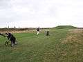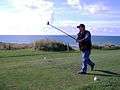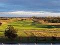 the 18th at Granville seen from the cluhouse at sunrise when the shadows play on the humps and hollows- the 6th tee at Granville from where you can see Jersey and much of the Brittany coastline