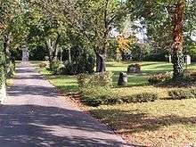 At roughly the same time, about 900, the northern settlement belonging to the Weißenburg Monastery (near today’s Peterspark) was recorded in that institution’s directory of holdings, even describing it in depth, with the holdings already mentioned (church, parish estate, manor house and many buildings), which point to an already great age for the village even then. The settlement later vanished or perhaps moved to the south to join the other two. Saint Peter’s Church (Peterskirche) and its graveyard, whose beginnings could well go back to Roman times, were nevertheless kept on into the 19th century as a religious centre and necropolis, even though they lay far outside the later town of Grünstadt. In 1819, the church, which was more than 1,000 years old, was torn down, and the ancient patronage "St. Peter" then passed to the Capuchin church (now the Catholic parish church). The graveyard was closed only in 1874 and converted into today’s Peterspark.