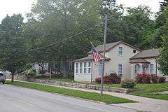 The Grafton Historic District is a 6-acre (2.4 ha) historic district in Grafton, Illinois. The district includes two blocks of Main Street (Illinois Route 100) and a section of Maple Street connecting to Grafton's historic wharf on the Mississippi River. The section of Main Street is a mostly residential portion of the city's primary residential, commercial, and social corridor. The houses in the district were built from 1836 to 1925 and have a variety of designs. Formal styles represented in the district include Queen Anne and Italianate; vernacular plans such as hall and parlor and side hall are also present. The Grafton Ice House is the lone commercial building in the district; built circa 1840, it is the only surviving building from Grafton's ice industry, which sold and stored frozen water from the river. The limestone wharf was built in 1846 to serve river transport, trade, and entertainment in Grafton; it was the city's second wharf, replacing an earthen wharf that was lost to a flood.[2]