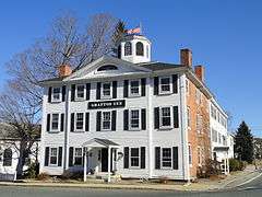 The Grafton Inn is a historic inn at 25 Grafton Common in Grafton, Massachusetts. The three story wood and brick building was built in 1805 by Samuel Wood, with a design influenced by the work of Charles Bulfinch. The building was significantly enlarged c. 1865-75, doubling its size and adding the Italianate front porch. It is a wood frame structure, with brick ends, a hip roof, and cupola-like belvedere.[2]