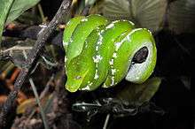 1. 1 2 Auliya, M.; Shine R.A. & Allison, A. (2009). "Morelia viridis". IUCN Red List of Threatened Species. Version 2015.3. International Union for Conservation of Nature. Retrieved 16 September 2015.