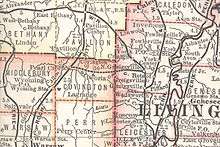 The company was organized October 1, 1897 and chartered January 26, 1898,[1] to build from the Delaware, Lackawanna and Western Railroad's main line at North Greigsville (present-day Greigsville[2]) west to the Buffalo, Rochester and Pittsburgh Railway at Pearl Creek. Three miles (5 km) were constructed from the DL&W to the Greigsville Salt Mine, but the mine closed in June 1899, and operations were suspended.[3]