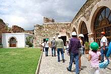Near the Valenciana Mine is the Guadalupe Mine, established in the 16th century. This complex was built with extremely large and thick stone walls supported by buttresses, giving it the look of a medieval fortress. The mine is no longer in operation but the complex has been undergoing redevelopment as a resort with a hotel, spa, golf course and more.[16][23]