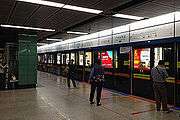 Guangzhou Railway Station Station (Chinese: 广州火车站) is an interchange station of Line 2 and Line 5 of the Guangzhou Metro.[1] It is located at the underground of the west square of Guangzhou Railway Station, located at the junction of Huanshi Road West (Chinese: 环市西路; pinyin: Huanshi Xilu and Renmin Road North (Chinese: 人民北路; pinyin: Renmin Beilu) in Yuexiu District. It started operations on December 29, 2002, (Line 2) and December 2009 (Line 5) respectively. Its area is about 10000 square metres and it is the second largest metro station in Guangzhou.[2][3][4]