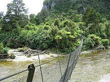 A swingbridge crosses the river near its junction with the Heaphy. This bridge is part of the Heaphy Track.[2]