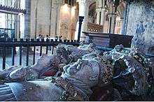 She died in 1454.[30] Gwladys and her husband William ap Thomas were patrons of Abergavenny Priory where they were both buried; their alabaster tomb and effigies can still be seen in the church of St Mary's.[22][31][32]