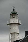 Högby Lighthouse is a Swedish lightstation. The lighthouse is built of iron and painted white. The design by architect Johan Höjer is unique to Sweden. The tower was exhibited at the Stockholm Exposition in 1897 before being located in Högby on a narrow peninsula. The flame ran on kerosene at first, and was updated with a gas mantle light in 1908. It was electrified in 1945 with a 1000 watt bulb and fully automated in 1967. Today the light runs with a faint 60 watt bulb, and the old rotating Fresnel lens has been replaced. The lighthouse is owned by The Swedish Maritime Administration.