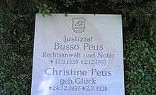 Hugo Busso Peus (17 September 1839 – 2 December 1893) was a German jurist and politician.