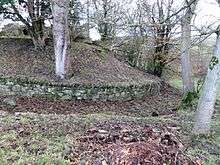 It is recorded that the lands of Haining had fortifications, a chapel, a mill at Craigmill on the Cessnock Water and Paroche, Overlane, Netherlane, Bruce-roddingis (sic) and Wraithe were properties within the barony.[2] Woodlands held by the estate were Haining Wood, Dummuysdaill (sic), Urisbankis (sic), Craigenconner, Dowbank, Millbank and Garrochmurebank.[3] The 'Gardens of Haining' are recorded in 1498.[3]