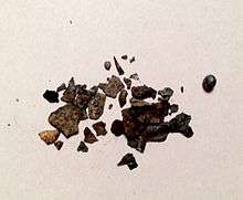 Due to the high volume of hammerscale flakes and spheroid shells produced during regular ironworking processes, archaeologists often use its presence to identify iron smithies and smelters. Hammerscale is easily detected due to its composition and magnetic nature, which allows for it to be easily extracted with a magnet.[6] In addition, again due to its magnetic nature, it is very useful when completing a magnetic susceptibility survey of a site. And, although both finished iron objects and slag are also frequently recovered at former locations of ironworking, hammerscale is arguably a more reliable recovery. Due to their size, iron objects and slag finds are more likely to have been removed or reused, whereas the small hammerscale flakes or spheres were most likely not removed.[7]