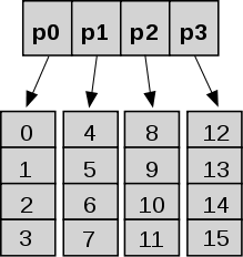 A full Hashed Array Tree with 16 elements