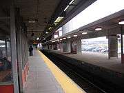In the early 2000s, Somerville began planning the Assembly Square development, built on the abandoned site of the former Somerville Assembly automobile plant. A key piece of the development was an infill station at the site between Sullivan Square and Wellington to reduce the number of car trips generated. After two years of construction, Assembly station opened on September 2, 2014. It was the first fully new station on the MBTA subway system since 1987, and the first infill station since Science Park in 1955.[1] Assembly station has an island platform between the two main tracks; during construction, outbound trains were diverted onto the normally-unused third track, and inbound trains onto the outbound track. The station has a boxy form, with a similar shape to the original Extension stations but built in a different style.