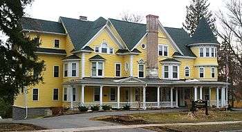 Hazelhurst is a historic house located at 150 East Genesee Street in Skaneateles, New York. It was originally a small summer home built for William Loney about 1866, and enlarged and renovated in 1904. It had an extensive lawn stretching down to Skaneateles Lake, which was later split up into 30 separate building lots that now share a common lake access. Hazelhurst is a three-story, irregular plan, Queen Anne style balloon frame dwelling. It features a wraparound porch with Ionic order columns, multiple gabled roof, porte cochere, and corner tower with conical roof.[2]:3–4, 6[3] The mansion is now used as a 14-bedroom home for the elderly called "The Athenaeum".[4]