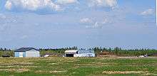 The airport has a few structures, namely a small shed, hangar and terminal building.