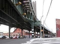 High Pumping Station as seen underneath the IRT Line from across Jerome Ave. Tracey Towers loom in the background. | |
