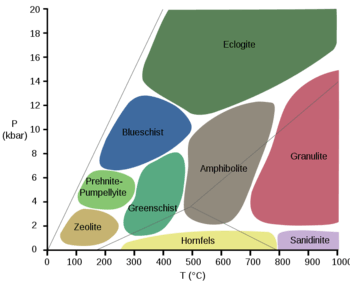 There are multiple processes that can lead to the development of high pressure terranes. First, upper crustal rocks have to be carried to great depths, nearing the mantle boundary. This could be accomplished by continental margin subduction, microcontinent subduction, sediment subduction, intracontinental subduction, subduction erosion, or foundering of a crustal root.[3] After burial at depth, these continental rocks can then return to the surface through:
