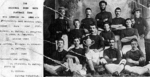 At a general meeting of the QBFA held at the Shamrock Hotel in Fortitude Valley in early 1891, it was reported that "The association is to be strengthened this year by the addition of three clubs from the Ipswich district, besides others from Brisbane." The names of those teams are not recorded, but were likely to have included Bundamba Rangers, Blackstone Rovers and the Bush Rats.[41] The Bundamba Rangers went on to win 'the badges' in 1895 (see photograph) and the Bush Rats team then won several premierships in the late 1890s and early 1900s. This was the beginning of a dominance of the Brisbane/Ipswich competition by Ipswich teams that was to last until the mid-20th century, with Ipswich teams winning a disproportionate number of premierships and producing many State and Australian players. However, by 1896, the competition had dwindled to four teams: Normans, Rangers, Rosebank and the newly formed Ipswich Rovers. Notwithstanding this, 1200 spectators attended the semi-final of the Charity Cup at Queen's Park, to see Rosebank defeat Rangers 1-0.[42] Rovers won the Challenge Cup (the premiership) and the Charity Cup (defeating Rosebank 3-2 at the "Association Ground, Bowen Bridge Road").[43] 1896 also saw the introduction of a junior competition.[44]